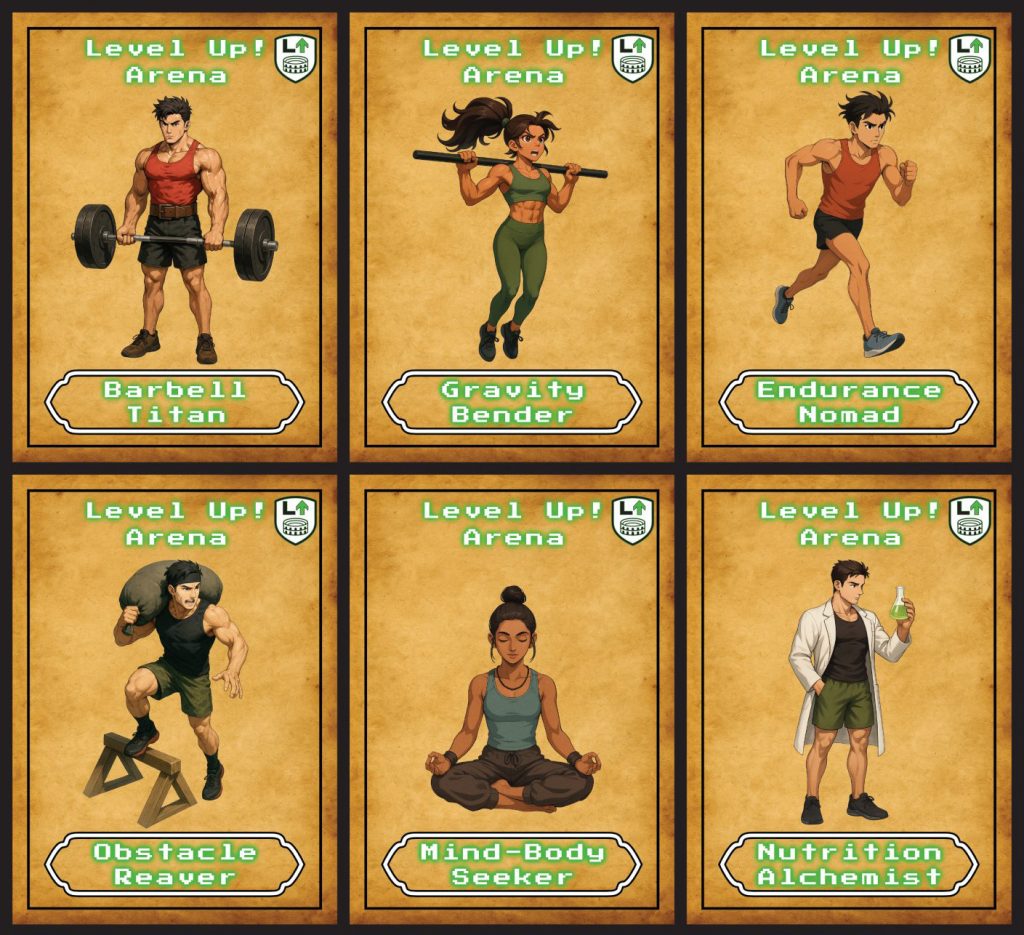 Level-ups, hero classes, transformation arcs, side quests, boss battles and a coaching system that turns every win into XP.