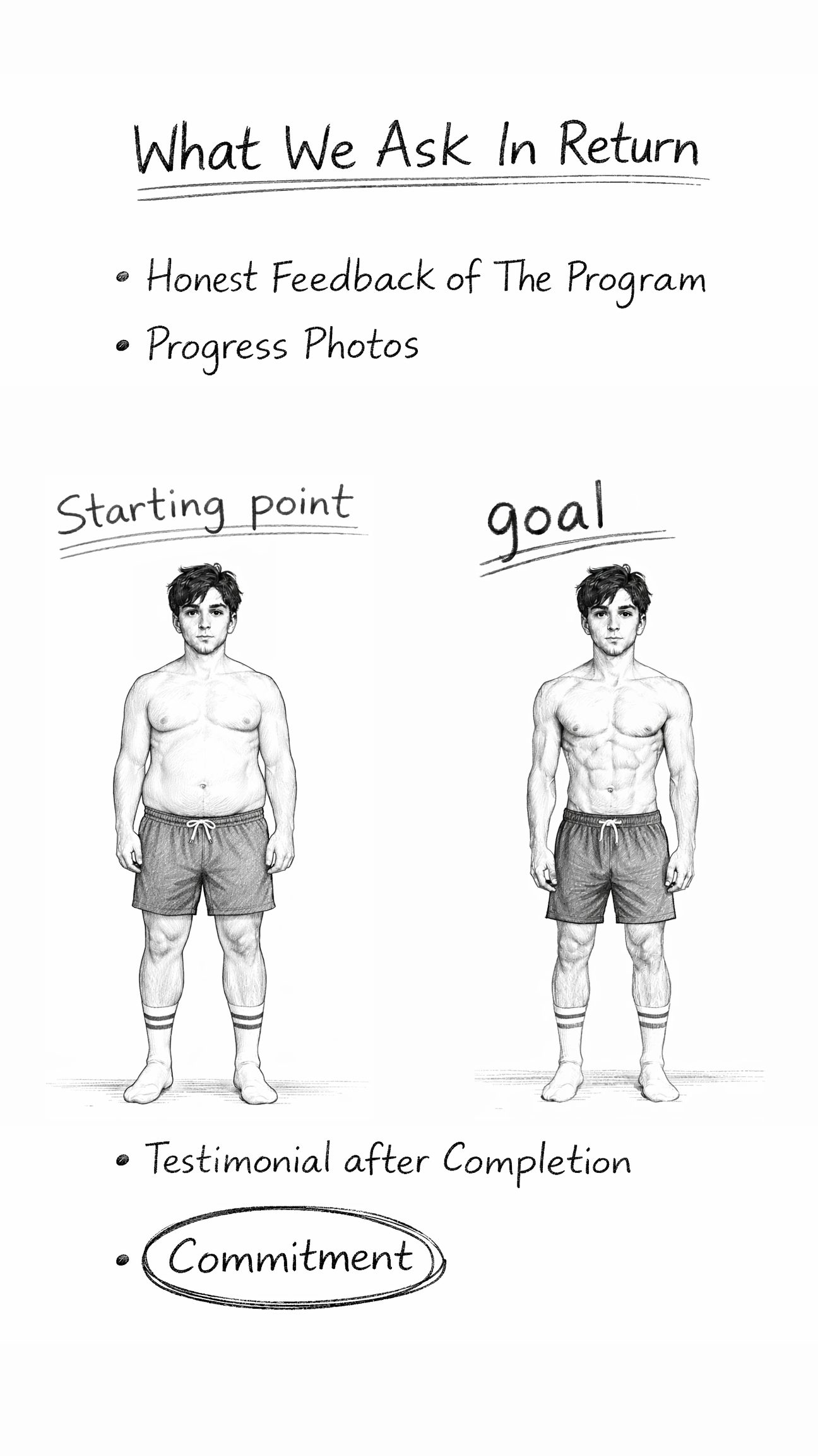 • Commitment – This is the big one because if you don’t show up, every week, you won’t get your results and in return we won’t get that golden testimonial to help us attract other clients.