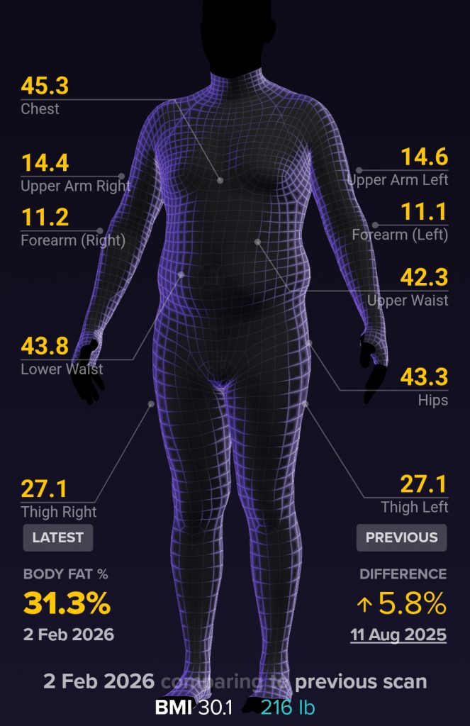 - Trunk fat: 46.4 lb